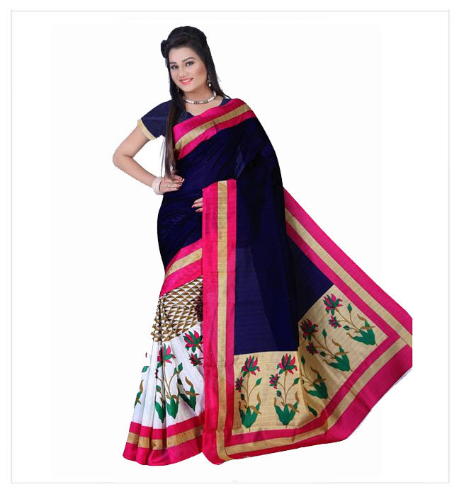 The cotton Silk Sarees for girls in trendy and contrasting colours and traditional motifs is the perfect attire for those special occasions and festivals. These gorgeous unstitched silk skirts are ready to be customised according to your wishes.