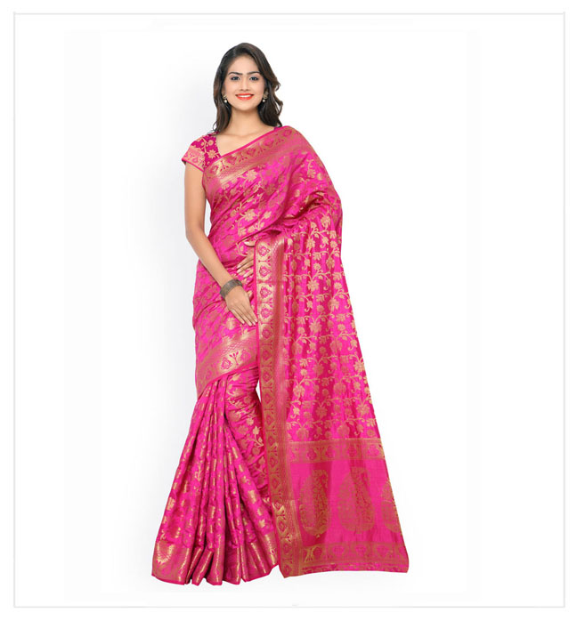 This traditional Silk Sarees for girls & womens in trendy and contrasting colours and traditional motifs is the perfect attire for those special occasions and festivals. These gorgeous silk ready to be customised according to your wishes.